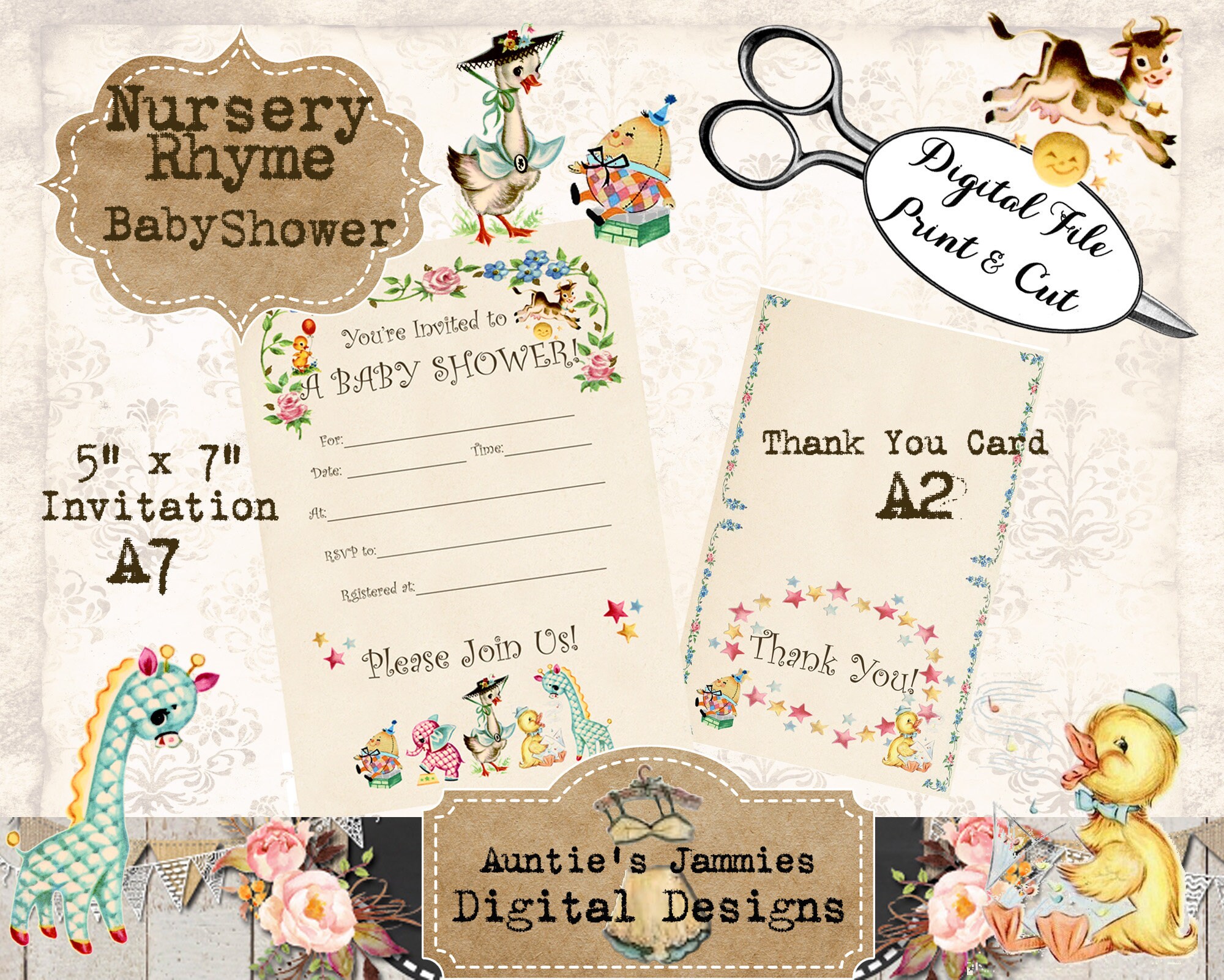 Printable Nursery Rhyme Baby Shower Invitations Thank You Etsy New Zealand