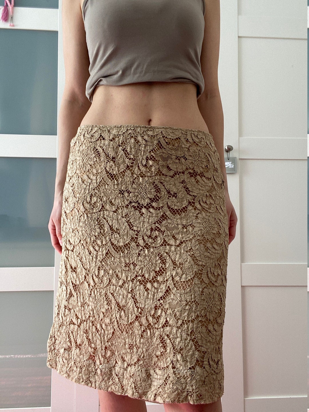 Vintage Prada Lace Beige Sheer Skirt Large Midi Semi 90s High Etsy Uk